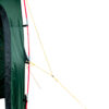 Все узлы, испытывающие повышенные нагрузки, усилены высокопрочной тканью. Край внешнего тента и край юбки обшиты прочной стропой, что значительно уменьшает риск порвать тент ветками и камнями. Стропа красного цвета, поэтому крайпалатки виден даже в сумерках и густой траве. Юбка по периметру палатки защищает от потоков холодного воздуха, дождя и насекомых.